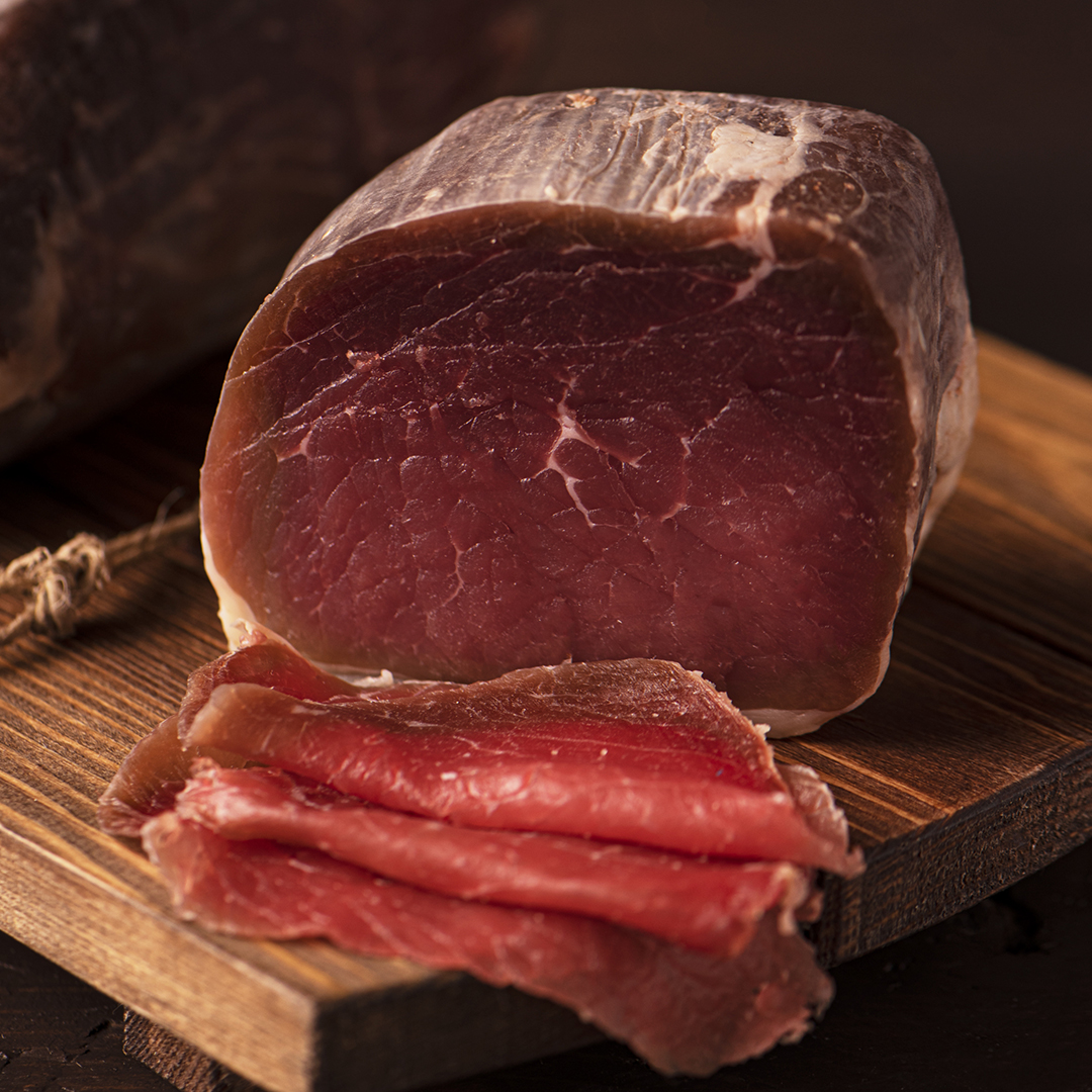 Πρόκειται για έναν ελαφρύ και ισορροπημένο gourmet μεζέ, με εξαιρετικό παρθένο ελαιόλαδο και θυμαρίσιο μέλι, κομμένος σε πολύ λεπτές φέτες.
