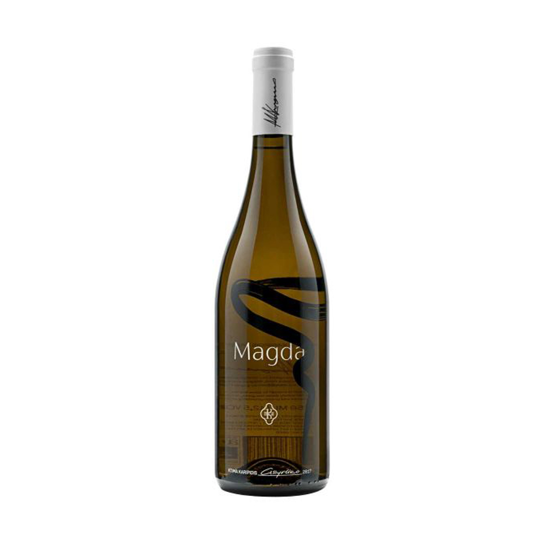 Ένα ξεχωριστό σπάνιο και βιολογικό Ασύρτικο από Θεσσαλία με το όνομα Magda (το όνομα της πρόωρα χαμένης κόρης του παραγωγού), που αξίζει να δοκιμάσετε για πολλούς λόγους! Έχει λαμπερό κίτρινο χρώμα στην όψη. Η επίδραση της παραμονής του επί 6 μήνες σε δρύινο βαρέλι είναι εμφανής στην πολυπλοκότητά του και στο πλούσιό του άγγιγμα. Ώριμα εσπεριδοειδή, λευκά λουλούδια και ορυκτά στοιχεία συνδυάζονται με λιπαρότητα και νεύρο, μέχρι την μακριά του επίγευση σε νότες βρεγμένης πέτρας.